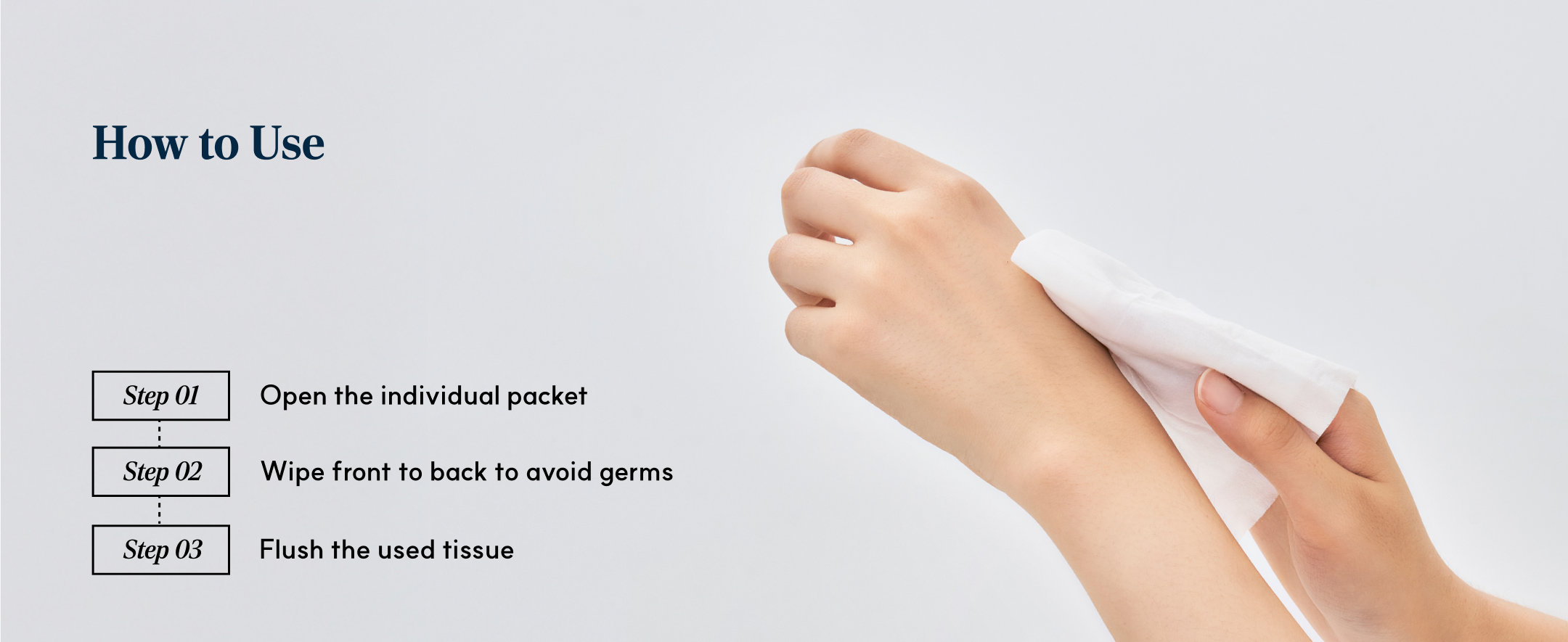 Wipe front to back to avoid germs.